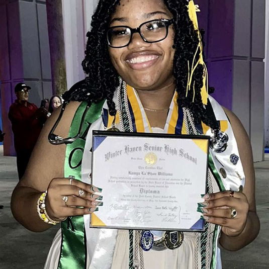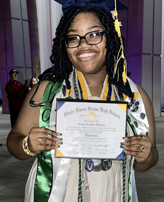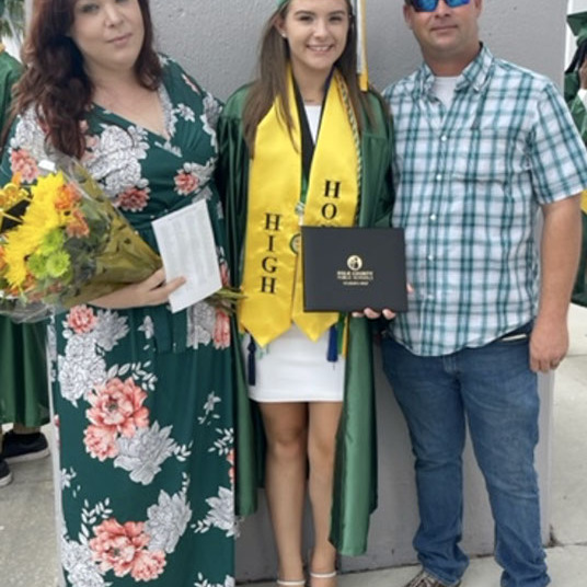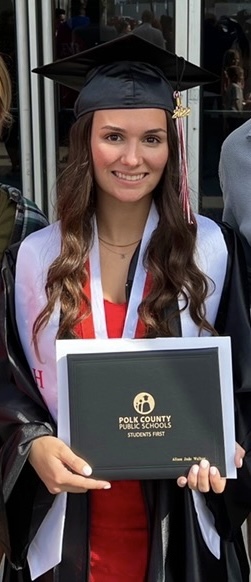My name is Skyla Jones, and I am a senior at Haines City High School. During high school I played volleyball and weightlifting. I played both for 4 years and I am very thankful to experience playing a high school sport. I plan to attend Polk State College in the fall semester of 2022 to major in nursing. I have been a dual enrollment student with Polk State for two years and have completed many classes. My overall goal for my career and education is to obtain my Doctor of Nursing Practice degree and become a nurse practitioner. I plan to complete my Associate of Science degree in nursing in under three years as I still have some prerequisite courses to take before applying to the program. After graduating with my associate degree, I would like to become a travel nurse. I chose this career for the reasons of helping other people and getting to explore the country. I also know that some states have a nursing shortage so I will also be helping my future coworkers get a break.